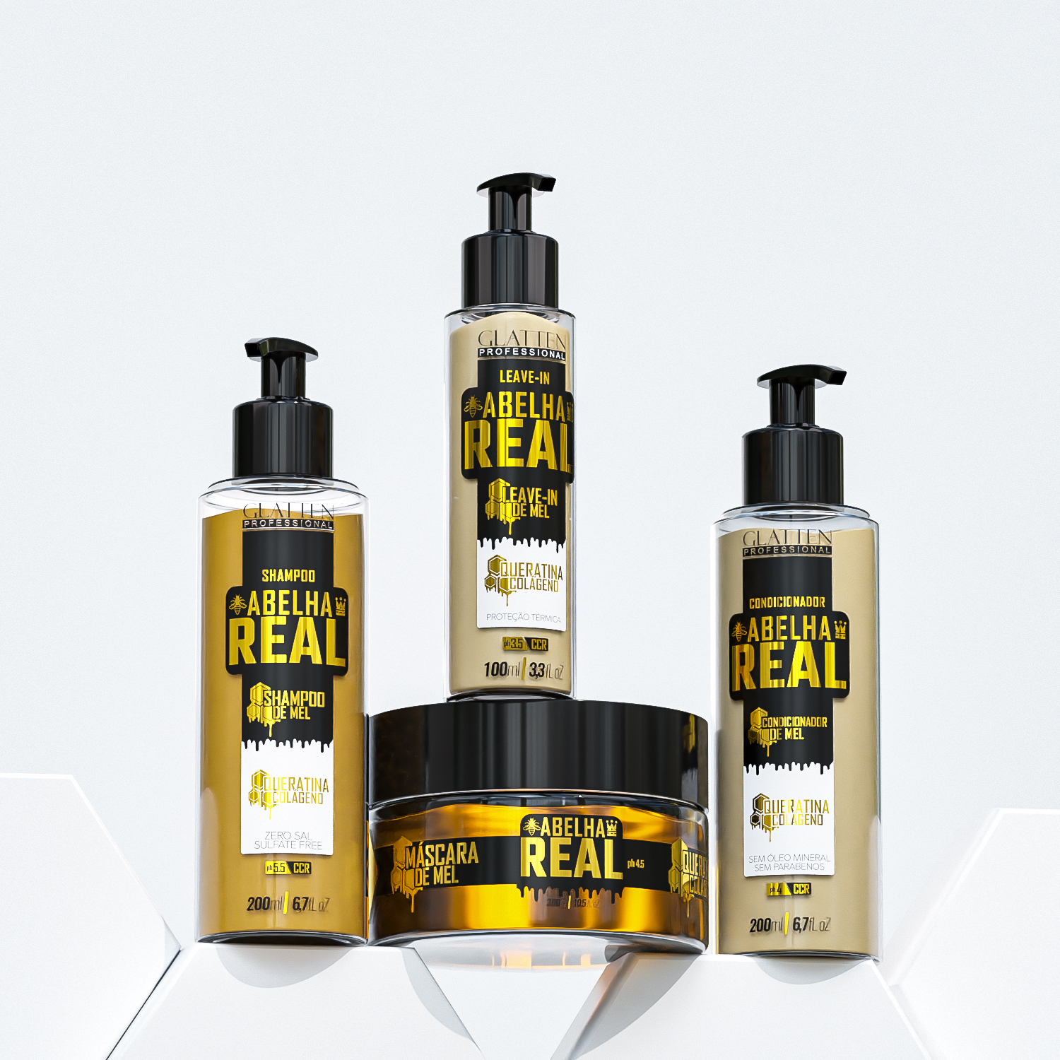Se você sente que seus cabelos estão fracos, ressecados ou sem vida, calma que temos a solução perfeita para você! O Kit Abelha Real da Glatten é um verdadeiro tratamento real para os fios, trazendo a potência da geleia real, mel e colágeno para uma reconstrução profunda e hidratação intensa. 💛✨